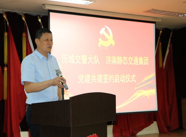 市交警支隊(duì)黨委副書記、政委段富勇,市國資委黨委委員、副主任謝紅兵,歷城交警大隊(duì)黨總支書記、大隊(duì)長孫如彬,濟(jì)南靜態(tài)交通集團(tuán)黨委書記、董事長李培鋼等參加共建簽約揭牌儀式并講話。儀式由歷城交警大隊(duì)黨總支副書記、政委崔科軍主持。
